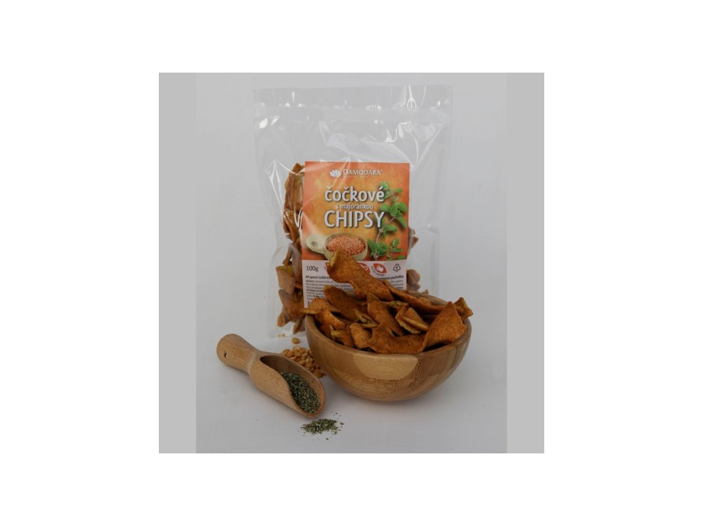 Čočkové s majoránkou jsou poctivé křupavé chipsy z mouky z červené čočky doplněné sušenými bramborami, majoránkou a jemně kořeněnou směsí s asafoetidou a kurkumou. Výsledkem je harmonická chuť s jemně bylinkovým aroma. Skvěle se hodí jako zdravější svačina, snack k posezení nebo doplněk k polévkám a salátům. Výrobek je ručně vyráběný, bez lepku, vhodný pro vegany, bez GMO a bez karmy.